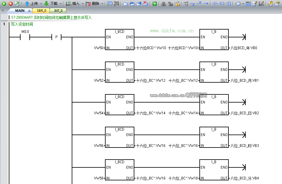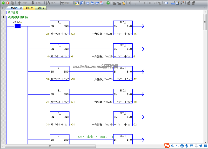 第二步:(雙擊打開窗口1,設計如下圖S7-200SMART PLC 實時時鐘時間(讀。┊嬅妫