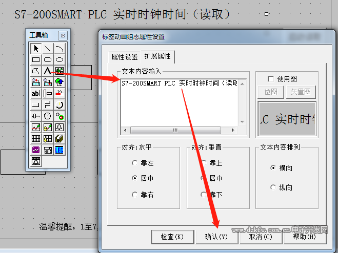 第三步:(雙擊打開窗口1,設計如下圖S7-200SMART PLC 實時時鐘時間(寫入)畫面)。寫入畫面設計與讀取設計是基本是一致的,大家可以參考讀取來以此類推。