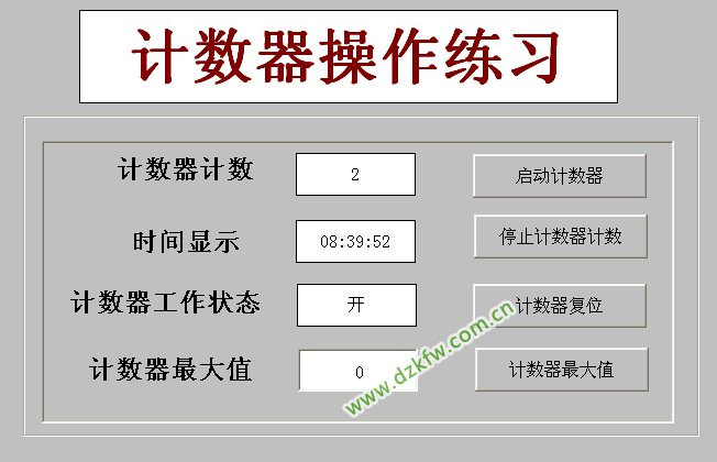1—255,以1號計數器為例,要求用按鈕啟動、停止1號計數器,使1號計數器復位,給1號計數器限制最大值。函數的具體應用可以看“在線幫助”。計時器的運行效果圖如圖12-1所示。具體制作過程操作如下