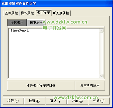 腳本程序輸入完成后點擊檢查按鈕,確認正確后退出。用戶窗口的畫面組態完成后,可以用“編輯條” 中的工具進行調整相應的構件的位置關系。