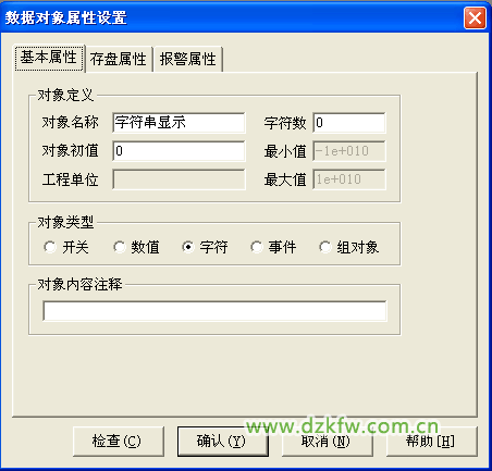 開關型、數值型、字符型三種數據對象分別對應千腳本程序中的三種數據類型。在腳本程序中不能對組對象和事件型數據對象進行讀寫操作, 但可以對組對象進行存盤處理。
