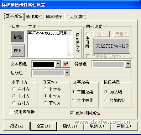 對4個標準按鈕進行屬性設置,如圖12-8至12-11所示。