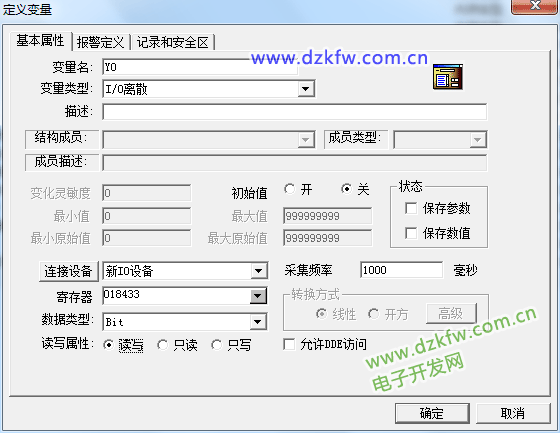 按圖所示建立Y0變量。注意:信捷PLCmodbus地址與莫迪康地址錯開1位,即信捷地址為0對應莫迪康為1,所以Y0地址應為0 18433