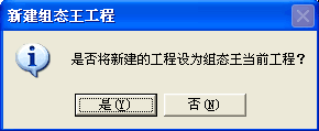 4、在工程名稱文本框中輸入工程的名稱,該工程名稱同時將被作為當前工程的路徑名稱。在工程描述文本框中輸入對該工程的描述文字。工程名稱長度應小于32個字節,工程描述長度應小于40個字節。單擊“完成”完成工程的新建。系統會彈出對話框,詢問用戶是否將新建工程設為當前工程,如圖2.4 所示。
