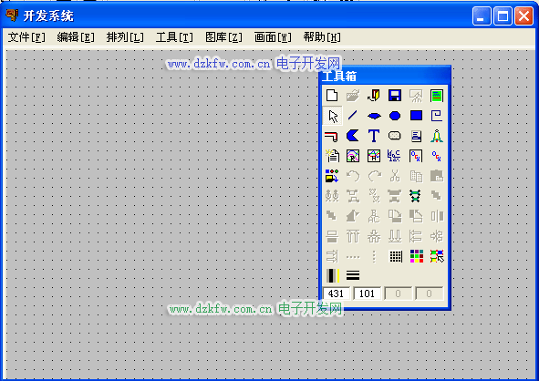 在“畫面名稱”處輸入新的畫面名稱,如水位控制界面,其它屬性目前不用更改。點擊“確定”按鈕進入內嵌的組態王畫面開發系統。如圖2.6 所示。