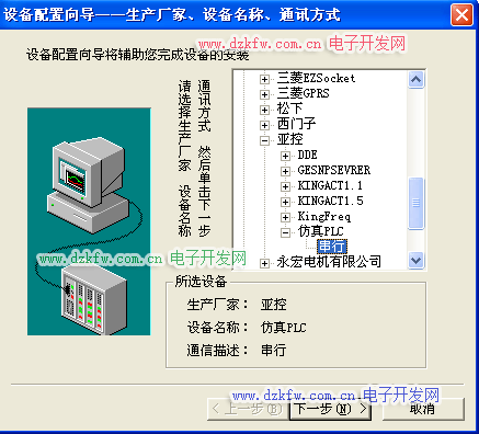 2、選擇“仿真PLC”的“串行”項,單擊“下一步”,彈出“設備配置向導”,如圖2.9 所示。