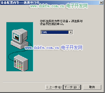 4、為設備選擇連接串口,假設為COM1,單擊“下一步”,彈出“設備配置向導”,如圖2.11 所示。