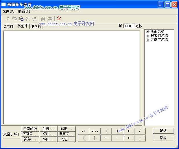 可將“每3000 毫秒”改為“每500 毫秒”,此為畫面執行命令語言的執行周期。單擊“確認”,及“確定”回到開發系統。