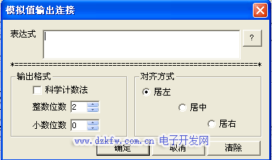 7、用鼠標單擊“模擬值輸出”按鈕,彈出對話框如圖2.22 所示。