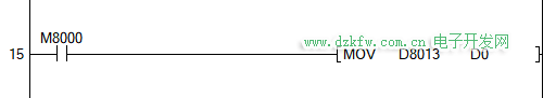 利用PLC特殊寄存器的秒寄存器(D8013)自動為組態王讀取寄存器(D0)賦值。