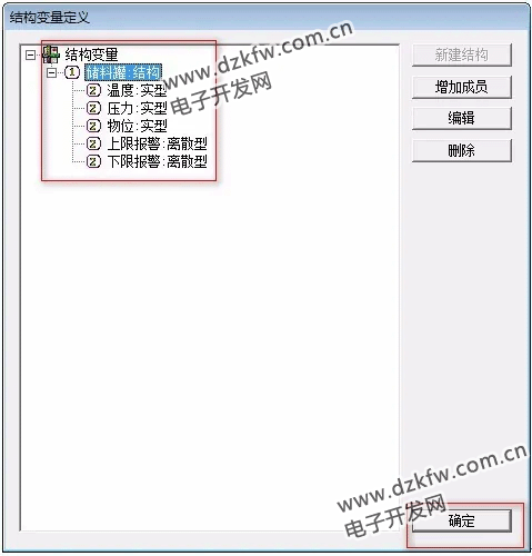 - 在結構成員中選擇該模板結構中的每一個成員,在成員類型中選擇該成員的變量類型。