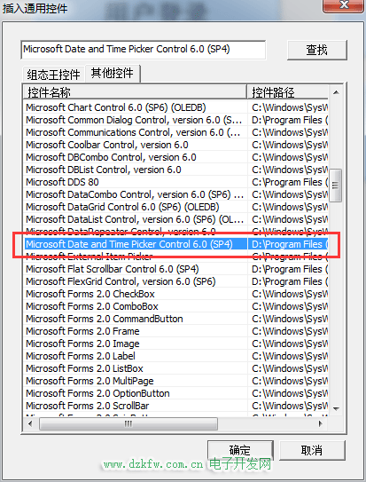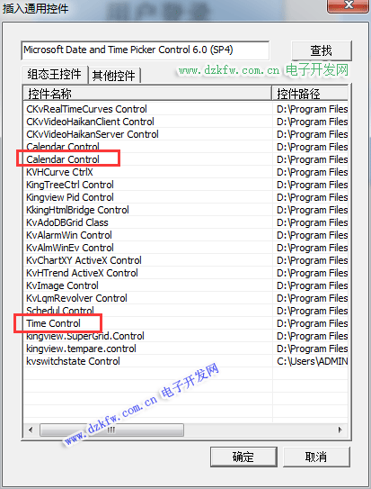 時間控件注冊完成后,在插入通用控件中會多出兩項(xiàng),如下圖所示: