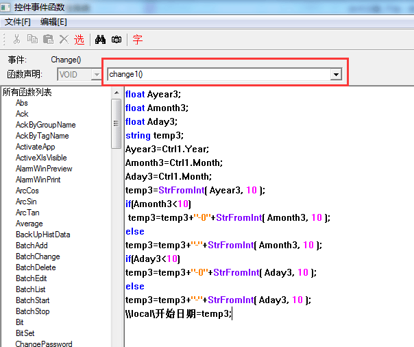 雙擊日歷控件-事件-change,雙擊后面的關(guān)聯(lián)函數(shù),先寫開始