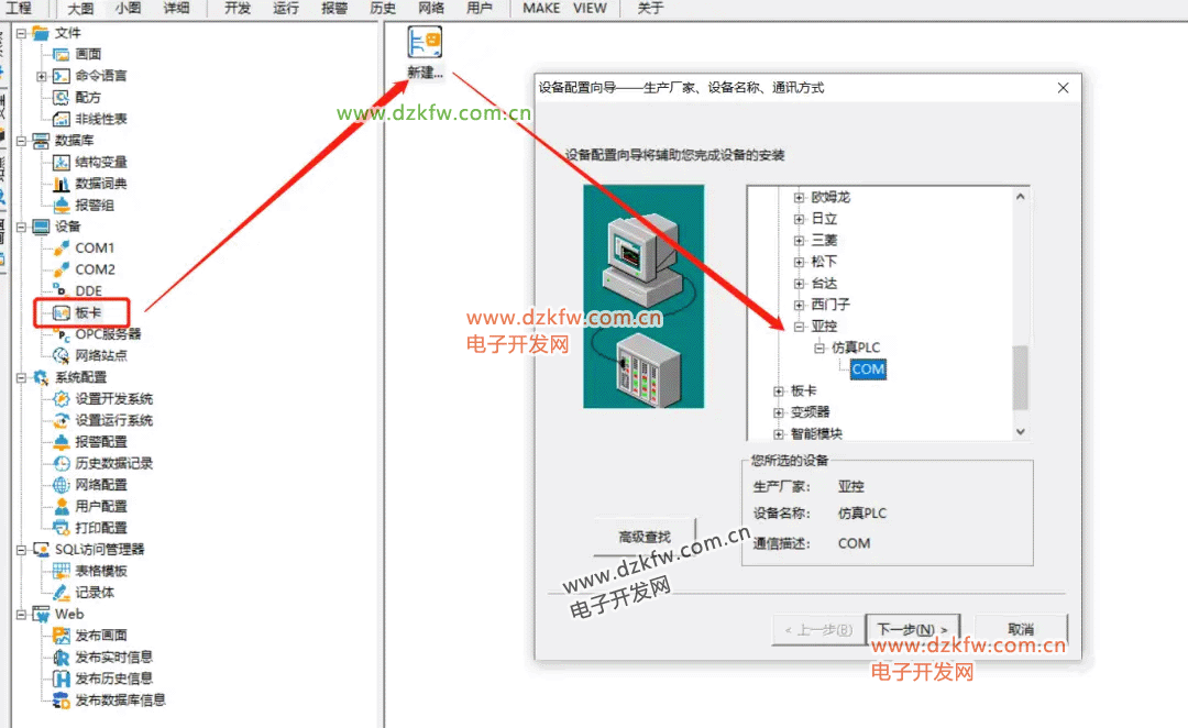 設備-->板卡-->點擊新建-->設備驅動-->PLC--->亞控