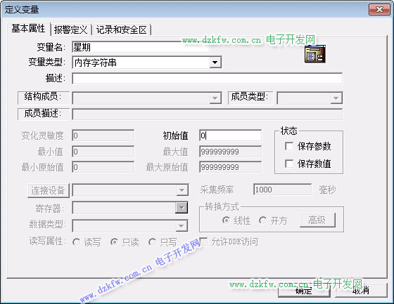 定義8個內存整數變量年、月、日、時、分、秒、星期、周;