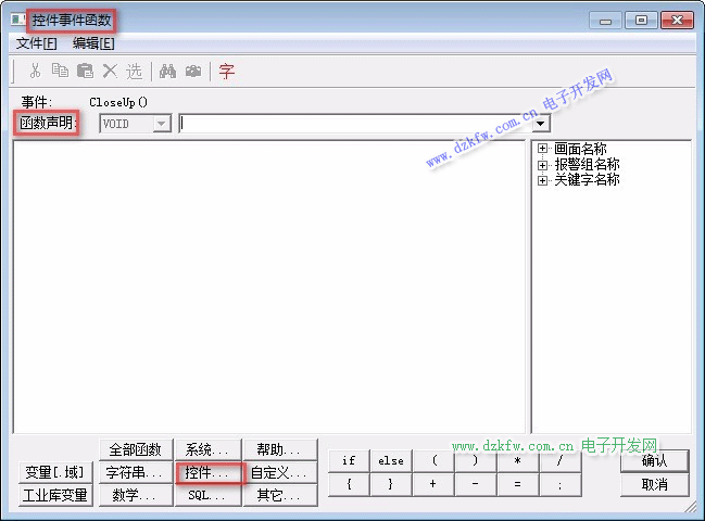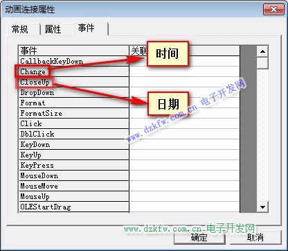 在動畫連接屬性,選擇“事件”,雙擊“CloseUp”事件的關聯函數,彈出“控件事件函數編輯框”。