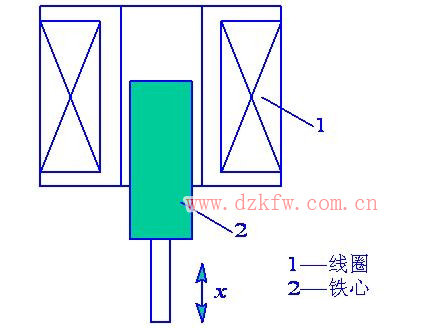 典型的可變磁阻式電感傳感器的結構如圖1所示,它主要由線圈、鐵心和活動銜鐵組成。