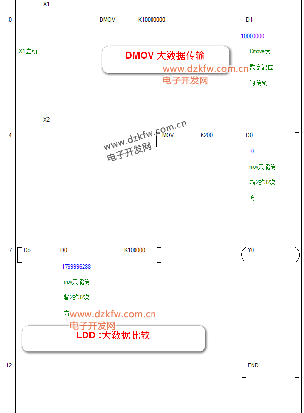 比較二個(gè)值,將結(jié)果(大于,小于,等于)輸出給軟元件(DMCP,32位)
