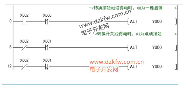 ALT指令是三菱PLC的交替輸出指令(三菱方便指令)。一次觸發(fā)MO為ON ,再一次觸發(fā)就OFF,再觸發(fā)又ON,如此交替下去。FX2N與FX1S在編程指令上是沒有區(qū)別的。