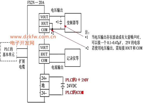 FX2N—2DA模塊消耗FX2N基本單元電源。