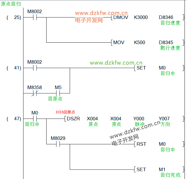 三菱PLC步進驅動器驅動步進電機梯形圖程序: