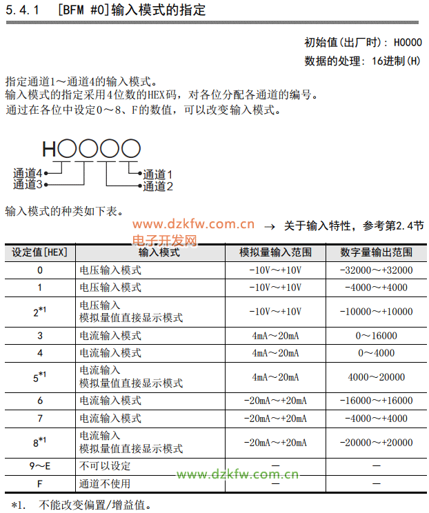 3、A/D轉換值保存在4AD的緩沖存儲區(BFM)中。