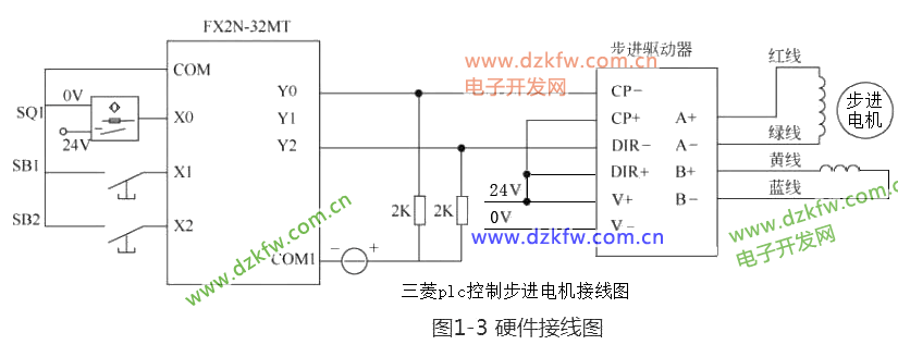 2、PLC是不能直接與步進驅動器相連接!因為步進驅動器的控制信號是+5V,而三菱 PLC 的輸出信號通常是+24V,顯然是不匹配的。解決問題的辦法就是在PLC與步進驅動器之間串聯一只2KΩ電阻,起分壓作用,因此輸入信號近似等于+5V。(有的資料指出串聯一只2KΩ的電阻是為了將輸入電流控制在10mA左右,也就是起限流作用,在這里電阻的限流或分壓作用的含義在本質上是相同的。)當然,還有個辦法是在PLC的COM1接線端子上接+5V DC也是可行的,問題是不方便!