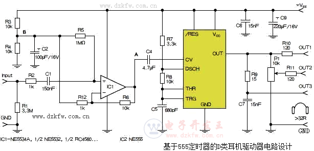 NE555定時器的D類耳機驅(qū)動器電路圖