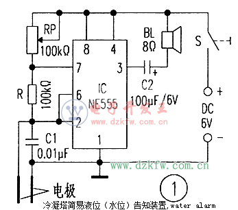 關(guān)鍵字:水位告警電路,NE555,液位告知裝置,液位探測(cè)