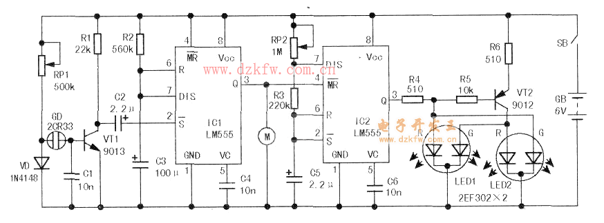 關鍵字:NE555,玩具車電路圖