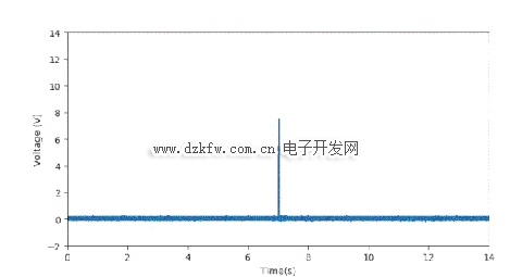下圖顯示了在煙霧傳感器附近點著紙張所產生的煙霧對放大信號的影響。