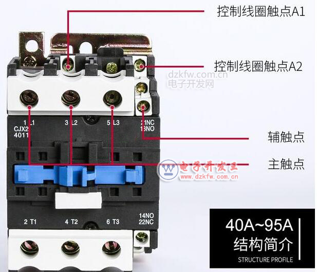 控制線圈為A1、A2觸點,用于控制主觸點的開合。
