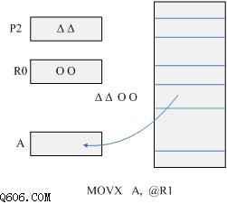 MOVX A, @R1 ;外部RAM(地址為P2 R1)的內容——>A