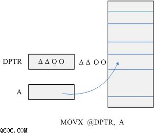 MOVX @DPTR, A ;A——>以DPTR內容為地址的外部RAM中
