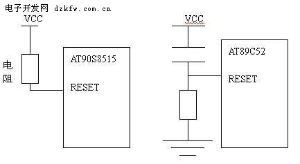 在替換時要修改用戶的電路,不可以直接替換,主要原因是復(fù)位電平不一樣.AT90S8515是低電平復(fù)位,AT89C52是高電平復(fù)位.