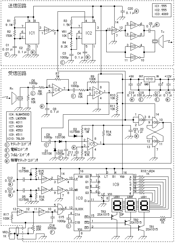 C9、D1、D2、C10組成的倍壓檢波電路取出反射回來的檢測脈沖信號送至IC5進行處理。