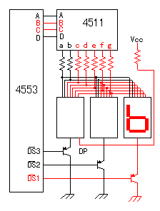 C15用于控制顯示部分的刷新頻率,當C15為1000pF時,刷新頻率為1100Hz,由IC9、LED1-LED3、TR1-TR3組成顯示電路。