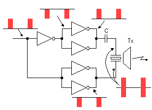 IC3(CD4069)組成超聲波發射頭驅動電路。