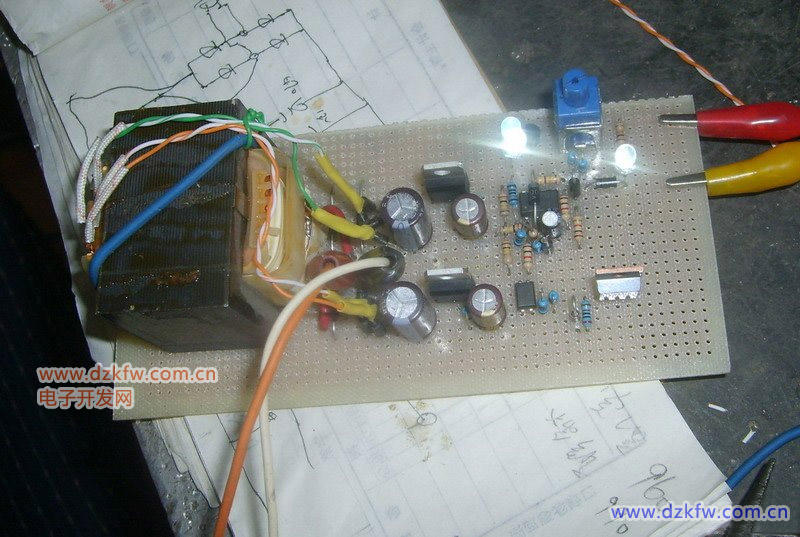 圖片比較大,點擊可看大圖。我是用手邊現(xiàn)有的元件制作的,所以原理圖不是很合理,僅供參考。