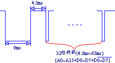 16位地址碼的最短寬度:1.12×16=18ms 16位地址碼的最長寬度:2.24ms×16=36ms
