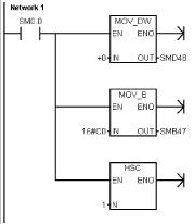 2. 初始化子程序中,根據所希望的控制操作對SMB47置數。例如: