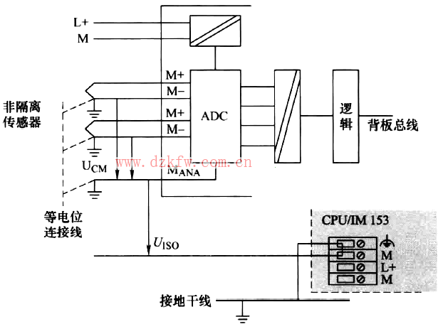 通過CPU/IM153的M和端子MANA之間的等電位互聯,可以避免電位差VISO超過限制值。
