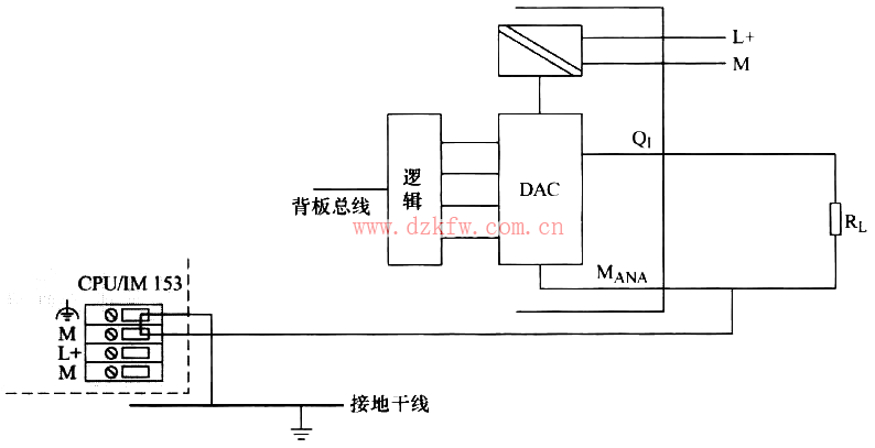 對于模擬量輸出模板與負載之間的連線,與模擬量輸入的處理方法類似,這里不再詳細介紹,僅給出相應的圖例及說明。