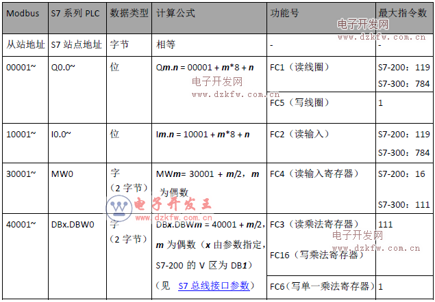 2)美國的 modbus 地址左起第2位用來表示元件的類型,例如 i0.0的 modbus 地址為010001。 因為數據類型已經包含在功能碼中了, 西門子的 i0.0的 modbus 地址實際上為000000, i2.0的 modbus 地址為 000016(或十六進制數16#0010) ,而不是010017。