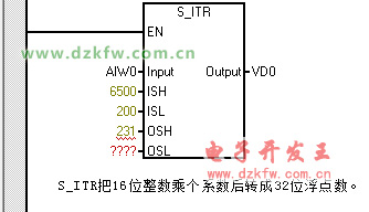S_RTR(scale real to real):把32位浮點(diǎn)數(shù)乘個系數(shù)后存放到輸出變量中。