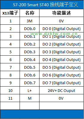 X12和X13是數字量輸出的接線端子,其具體的針腳定義見下面兩張表格: