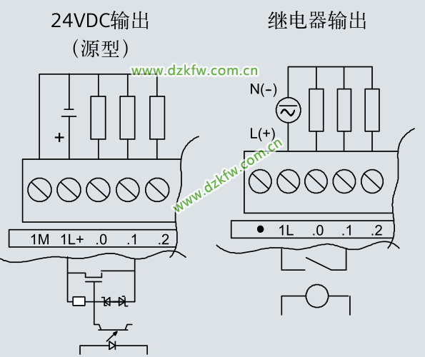 T:晶體管輸出:24VDC供電,電子電路,響應(yīng)速度快,最快可達(dá)100KHz,帶負(fù)載能力弱