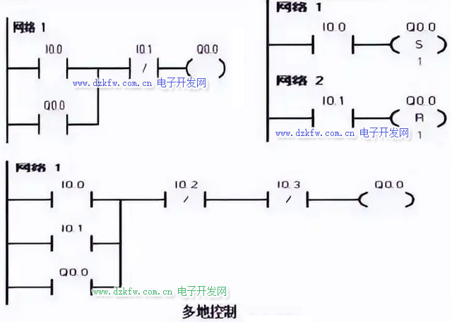多輸出自鎖控制即多個負載自鎖輸出,有多種編程方法,可用置位、復位指令