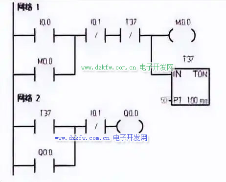 2. 延時停止控制 定時時間到,延時停止。I0.0 為啟動按鈕、I0.1 為停止按鈕。