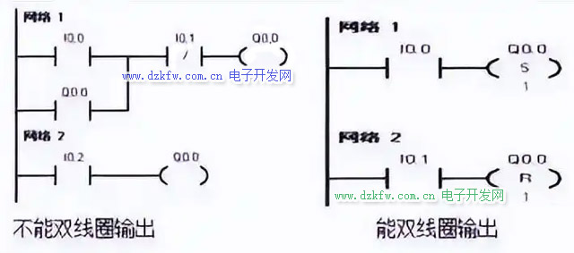 (2)梯形圖中同一編號的“繼電器線圈”只能出現一次,通常不能出現,但是它的觸點可以無限次地重復使用。